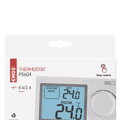 Digitálny termostat v bielej farbe a s rozmermi 30 × 120 × 77 mm sa hodí do každého interiéru.